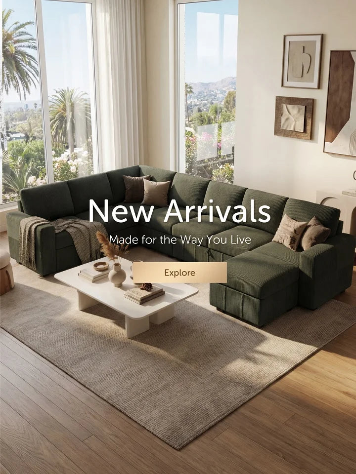 HONBAY 7-Piece Oversized Corduroy U-Shaped Pull-Out Sleeper Sectional Sofa with Storage Ottoman
