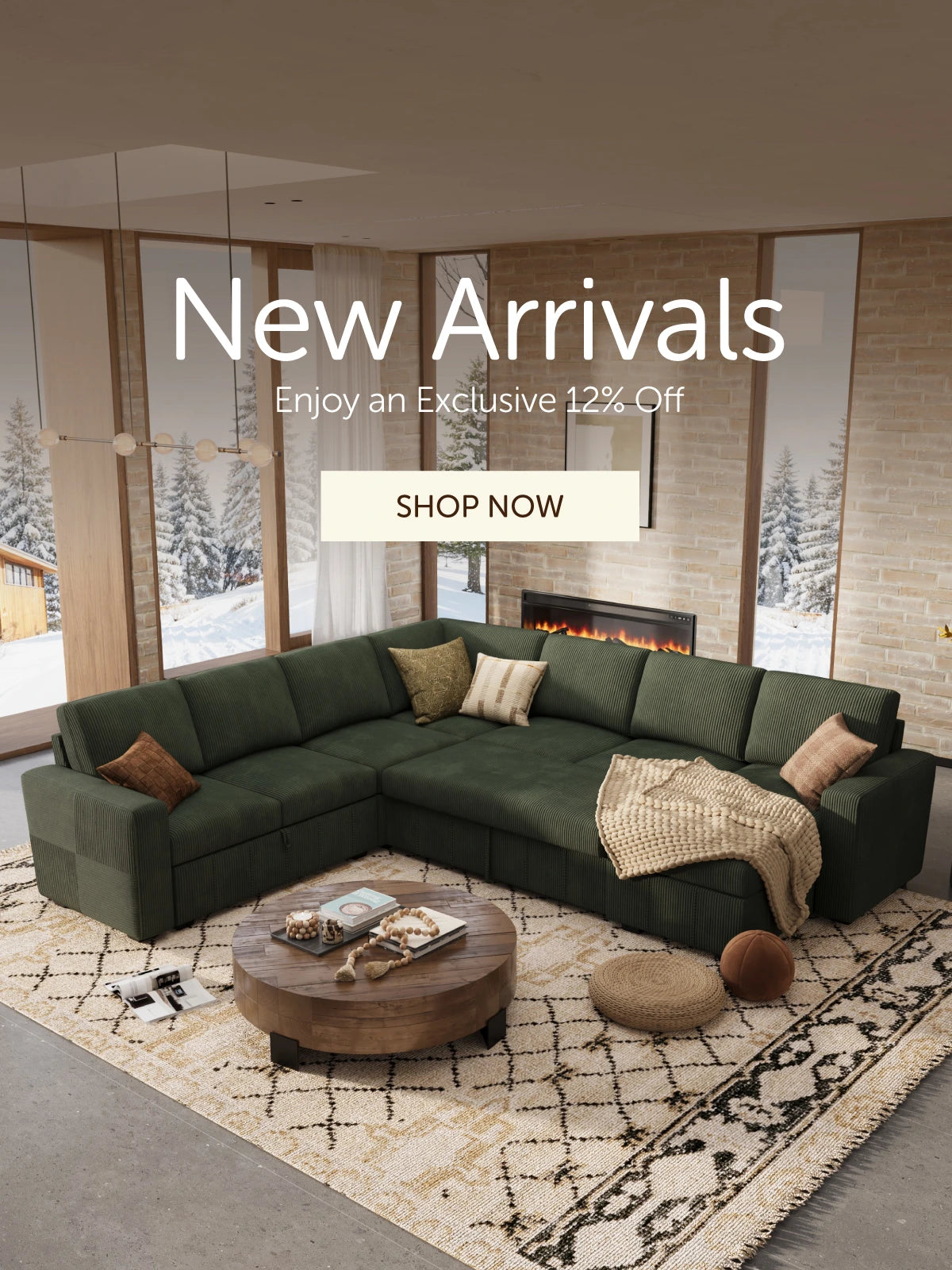 HONBAY 8-Piece Oversized Corduroy Pull-Out Sleeper Sectional Sofa with Storage & Block Arm
