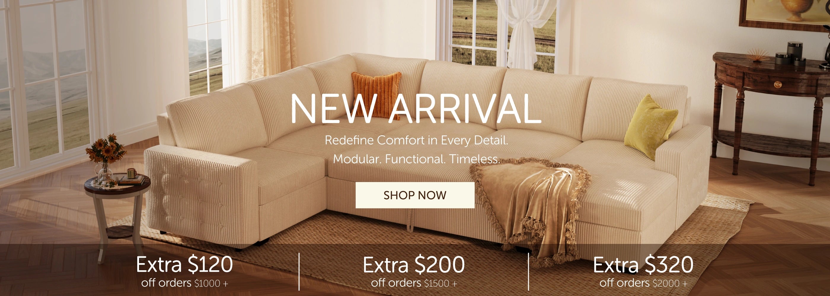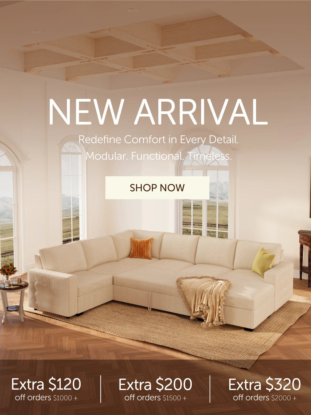 HONBAY 8-Piece Oversized Corduroy Pull-Out Sleeper Sectional Sofa with Storage & Block Arm