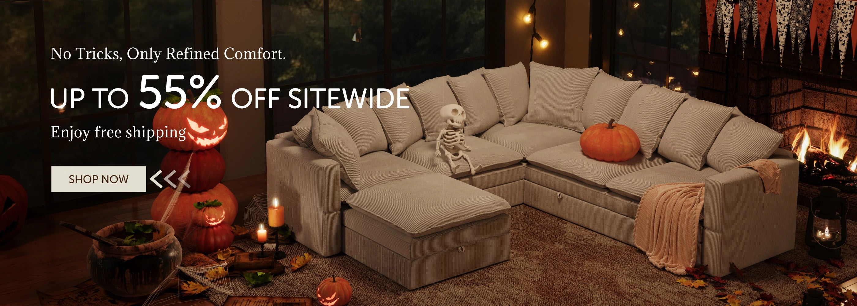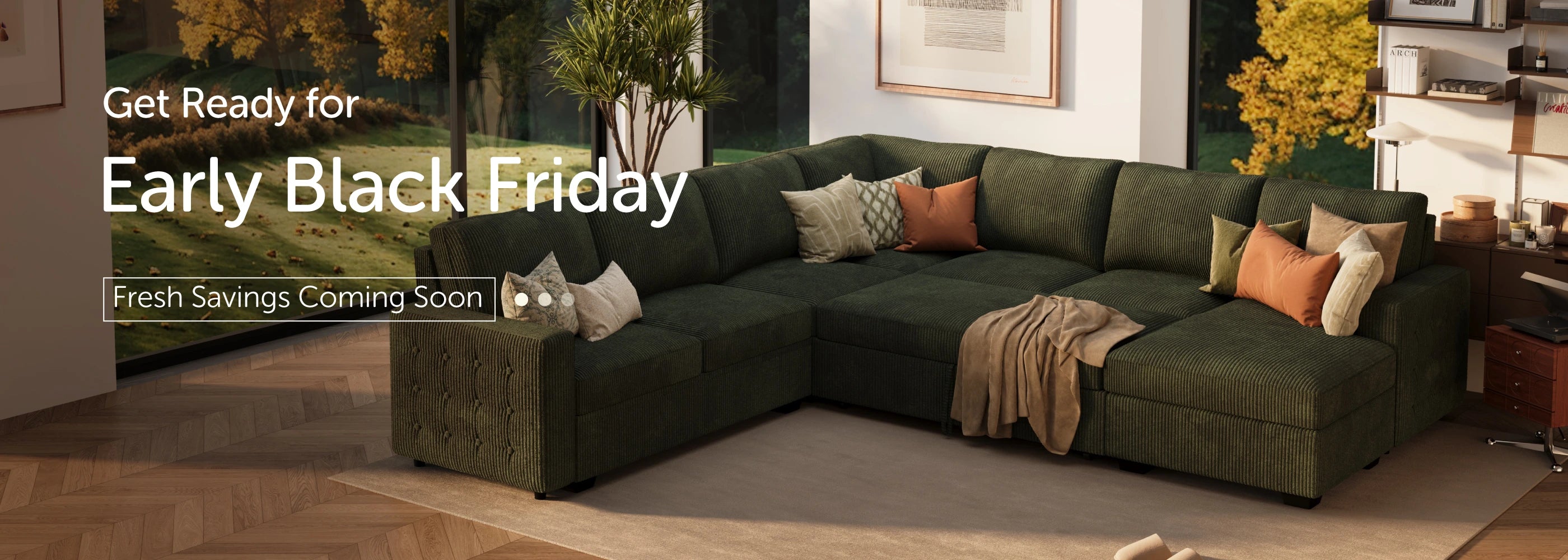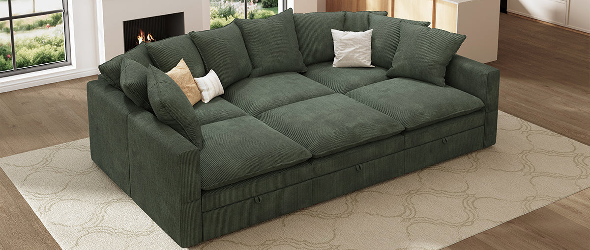 HONBAY 8-Piece Oversized Corduroy Pull-Out Sleeper Sectional Sofa with Storage & Block Arm