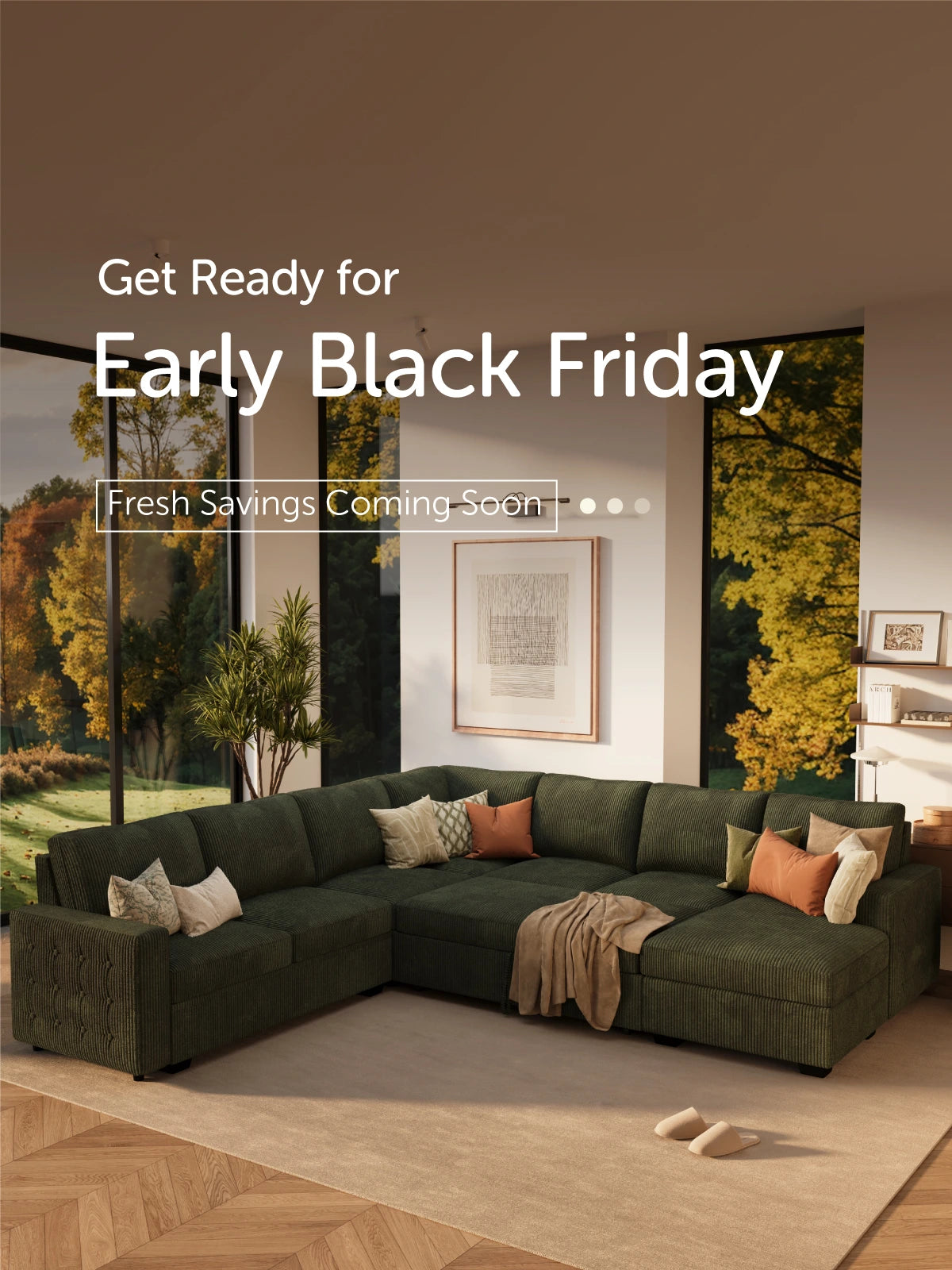 HONBAY 6-Piece Plush double-layer Cushion Corduroy Modular U-Shaped Sectional Cloud Sofa With 2 Storage Ottoman