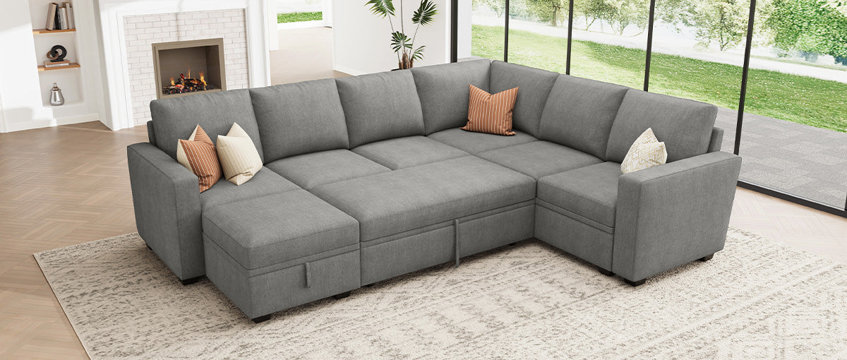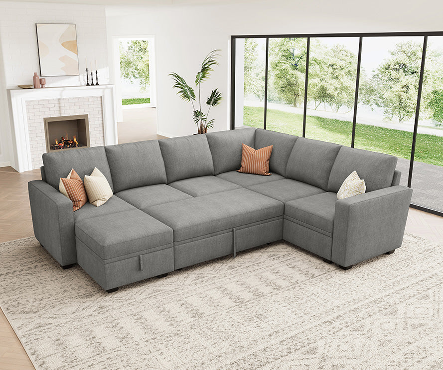 HONBAY 7-Piece Polyester Modular Sleeper Sectional Sofa With Storage Space