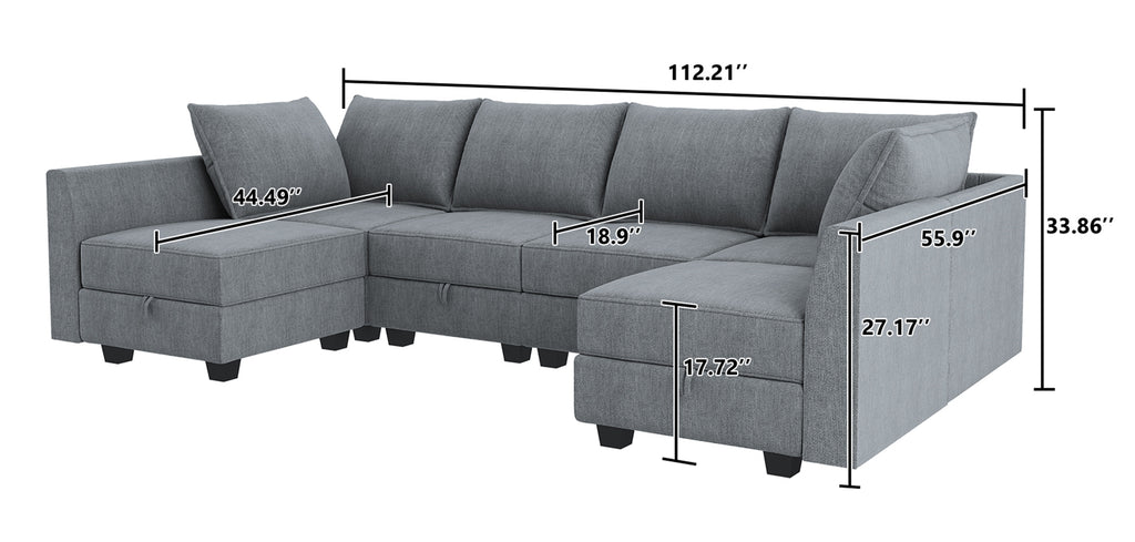 HONBAY Polyester Modular Sectional Sofa With Storage Seat