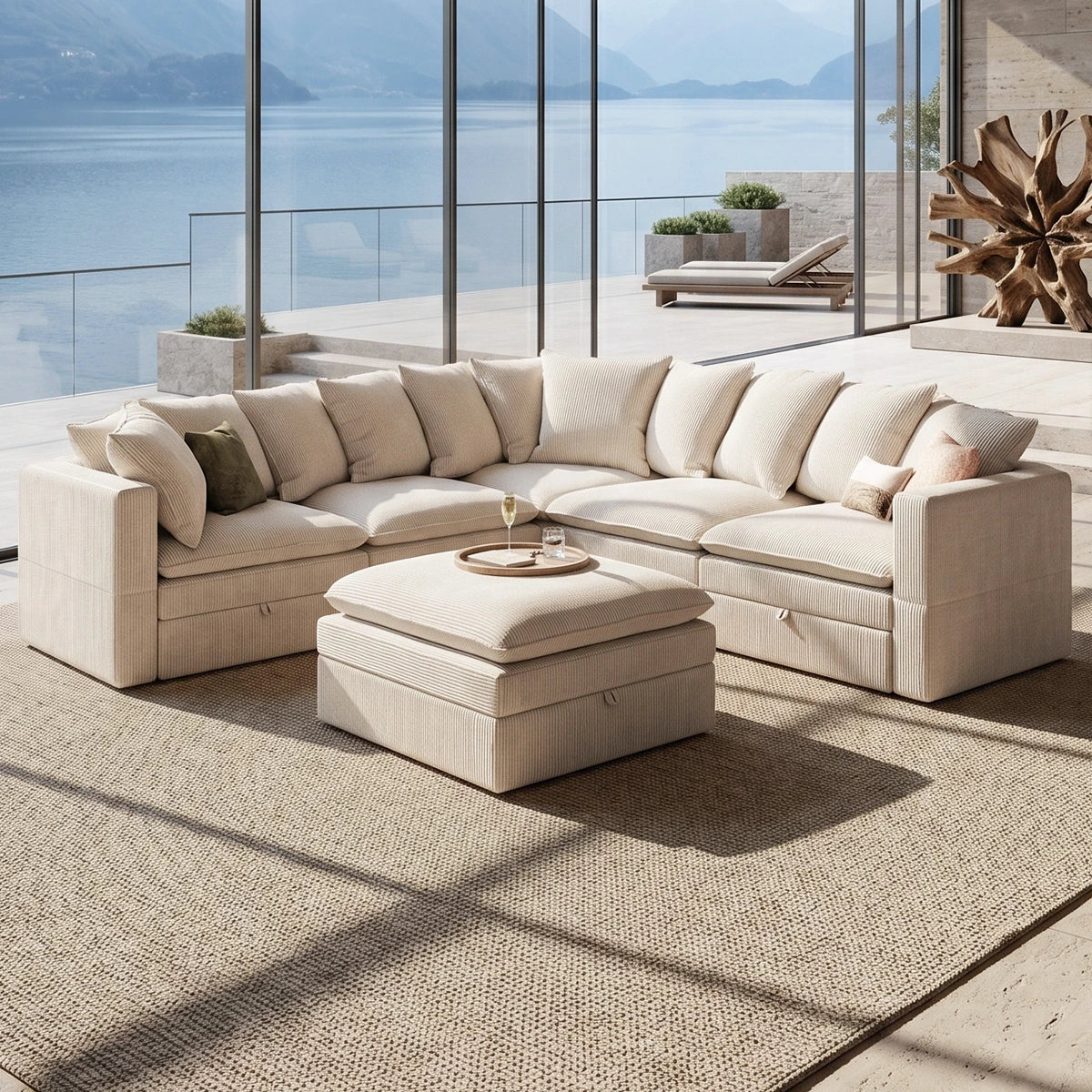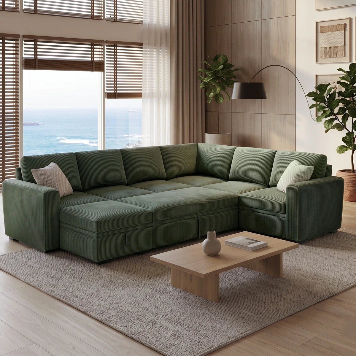 Molit 7-Piece Wide Plush Corduroy Pull-Out Sectional