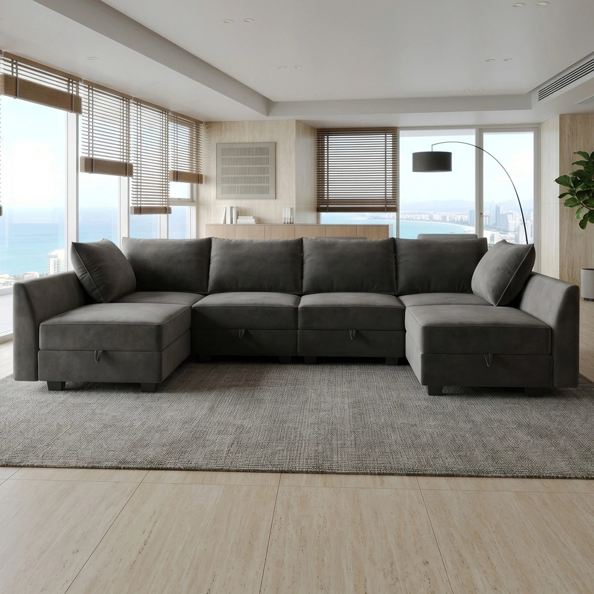 Host 7-Piece Velvet Pull-Out Sleeper Sectional