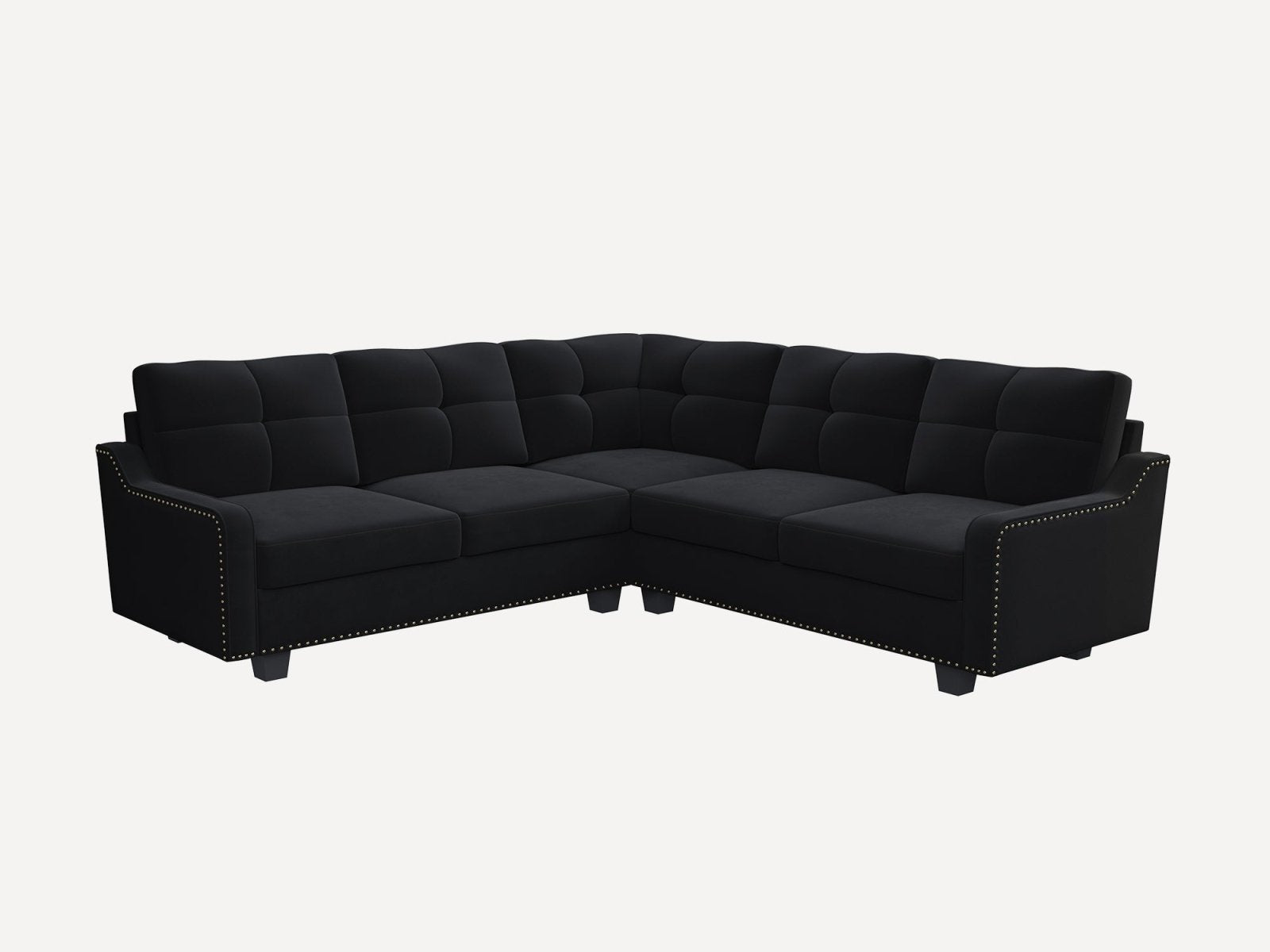 HONBAY 6-Piece Velvet Sleeper Sectional With Storage Space #Color_Dark Blue