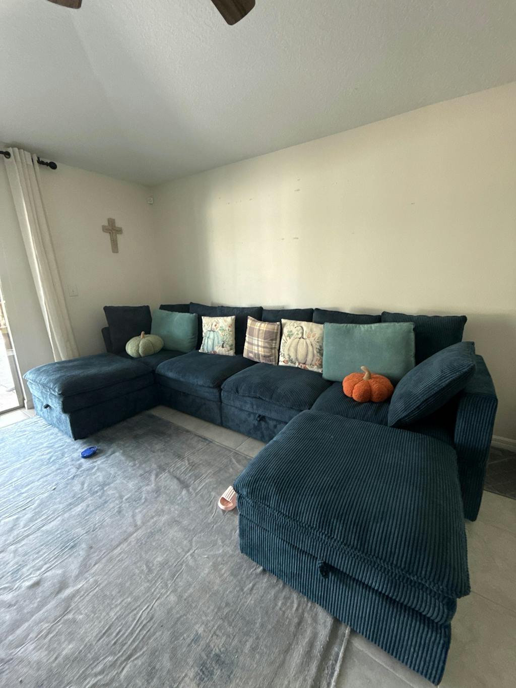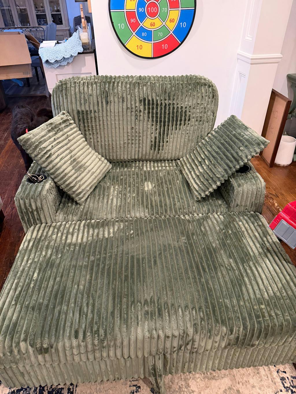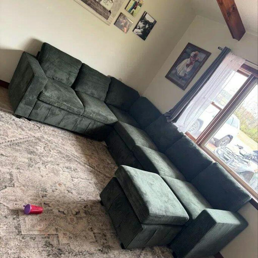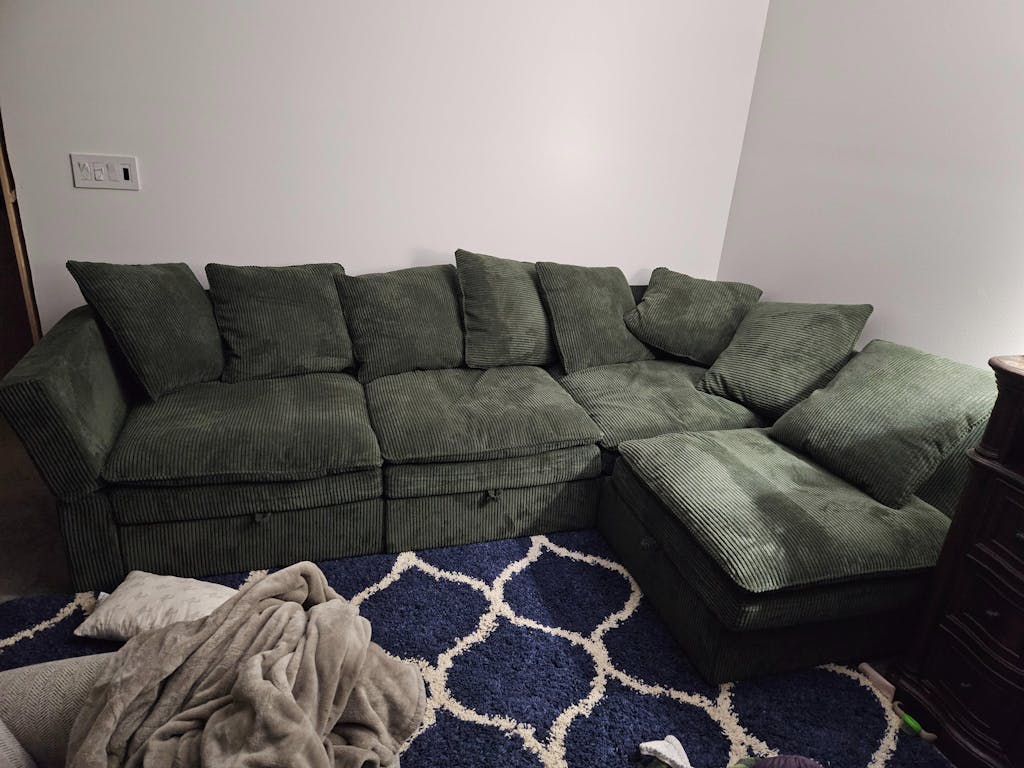 This is literally everything I wanted in a couch! The green corduroy fabric is absolutely gorgeous and super soft. The storage under all the pieces is really convenient. I wasn't sure if I'd like the reclining back/arm rests but it has been a game changer while watching tv and is so much more comfortable! I love that if I were to move somewhere bigger, I could add additional pieces since they're modular. I also love that all of the cushions and pillows have removable covers. It really feels like a big bed the way I have it set up. I'm really hoping it holds up well, but I'm super happy with it as of right now!
