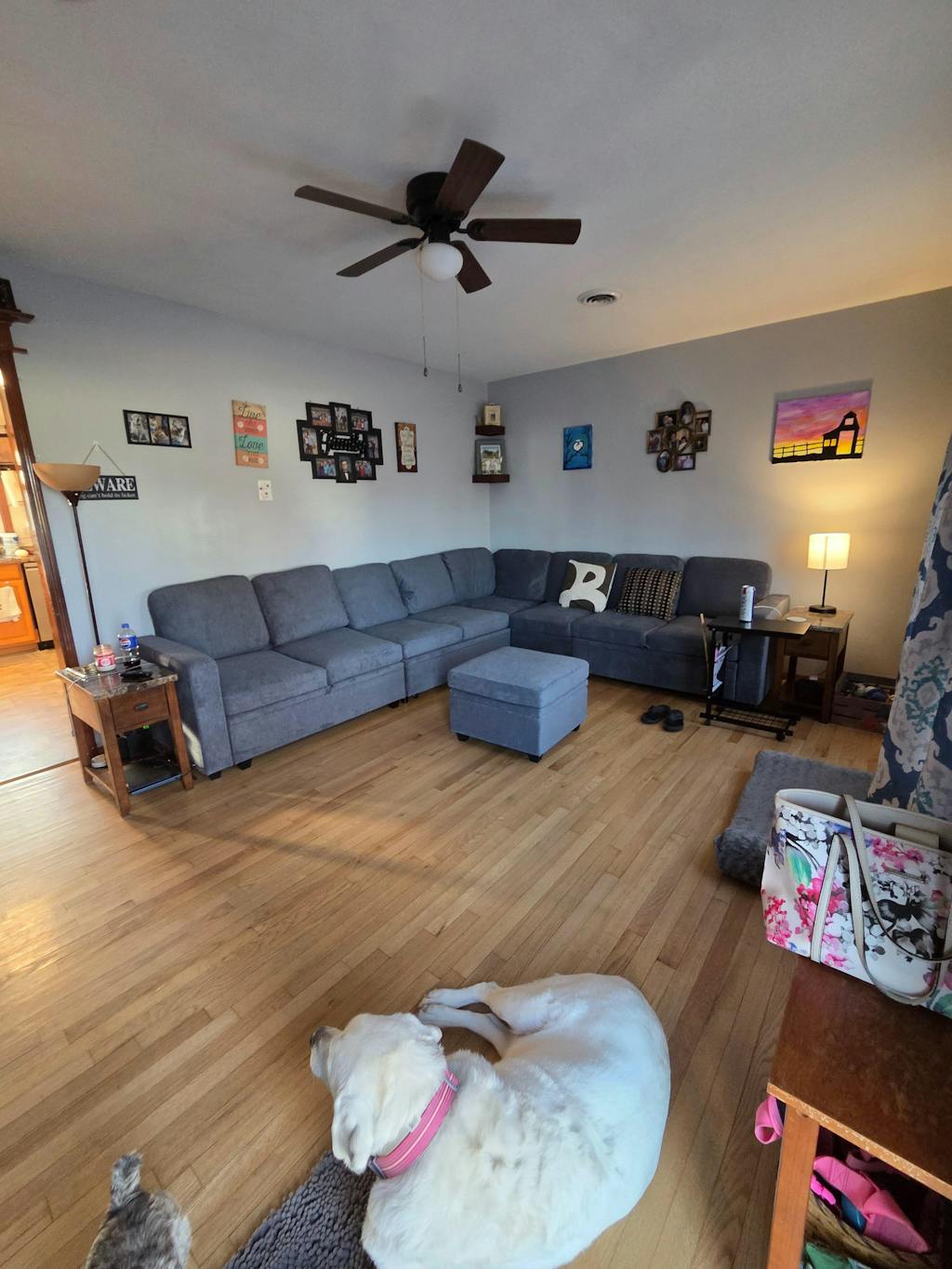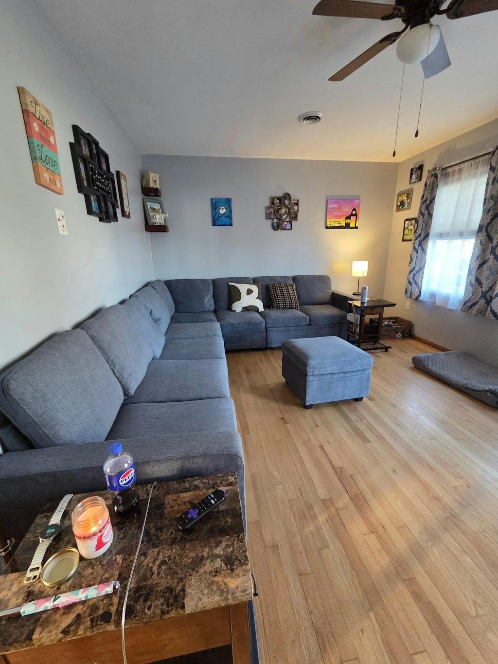 I have a very small space as you can see and this "double chaise" is a perfect fit for my space. My dog likes to lay along the back which is why the pillows are a mess in the photo. Absolutely love the storage under each seat and the slip cover style! The upholstery is not commercial grade or water resistant so this may not last you a lifetime but it gets the job done on a budget. The sofa already comes basically pre-assembled with the slip covers on everything. All you have to put together is the legs and the arms to the bases. Simple assembly but heavy pieces. Once each piece is connected together, this thing doesn't move. That said, when the ottomans are separated, they are a bit challenging to move. I recommend not putting on the included felt pads on the feet if you have carpet to help with movement (or vice versa if you want them to stick). It's super comfy. There is definitely a strong off-gassing from the foam for about a week or two but it's finally subsided. The cushions do tend to move a bit, but I added more Velcro strips to prevent this, however the pillow top still shifts a bit as you sink into the sofa. The Velcro strips has helped a lot to keep the base of the cushions in place.