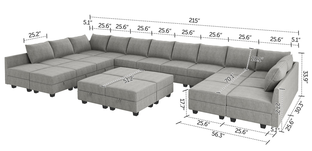 HONBAY 22-Piece Polyester Modular Sleeper Sectional Sofa With Storage Seat