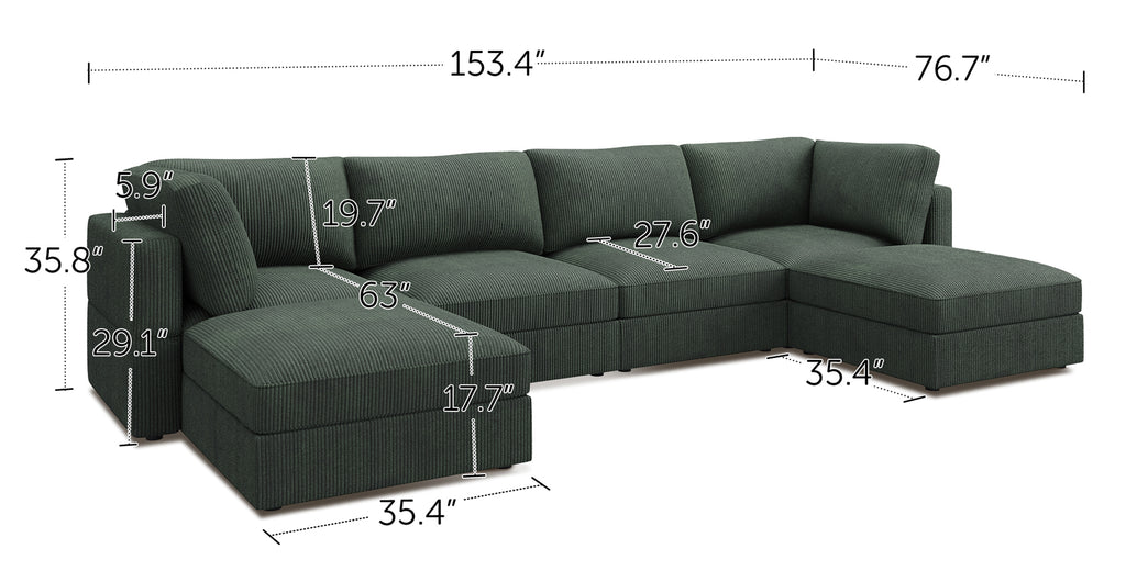 HONBAY 6-Piece Corduroy Modular Sectional Cloud Sofa With Oversized Storage Seat