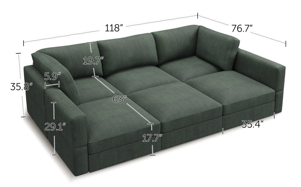 HONBAY 6-Piece Corduroy Modular Sectional Sleeper Cloud Sofa With Oversized Storage Seat