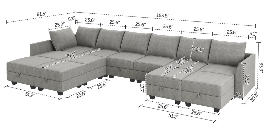 HONBAY 12-Piece Polyester Modular Sleeper Sectional Sofa With Storage Seat