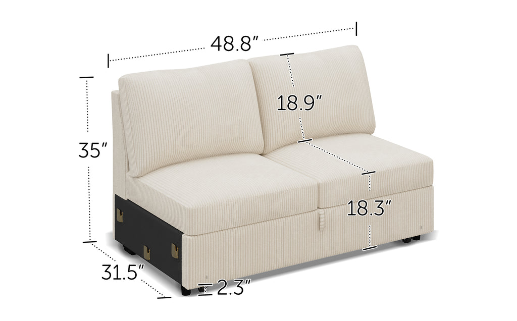 HONBAY 1 Piece Corduroy Modular Sectional Pull Out Bed