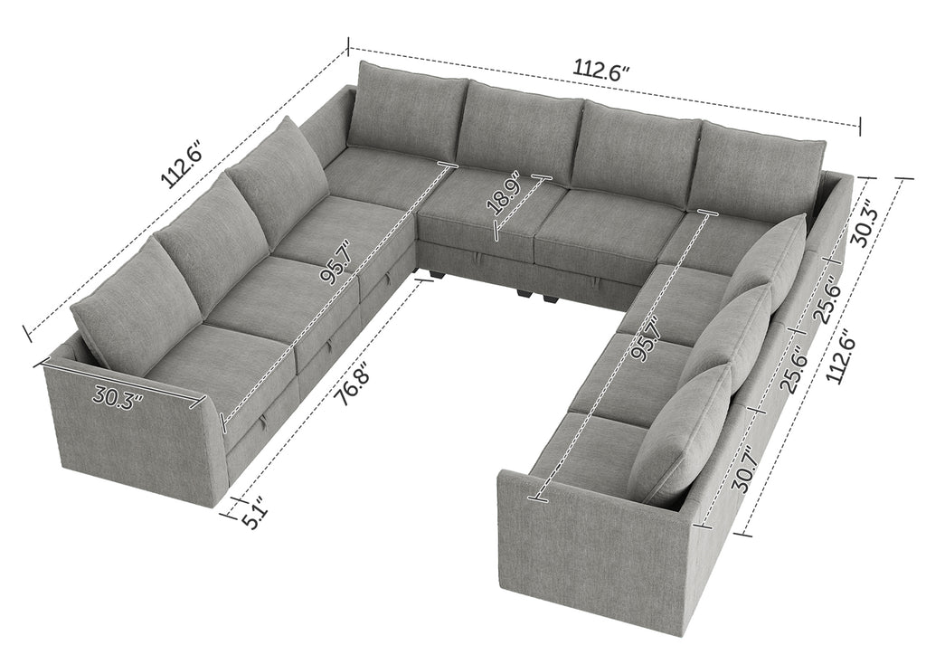 HONBAY 10-Piece Polyester Modular Sectional Sofa With Storage Seat