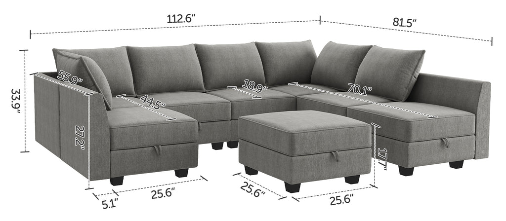 HONBAY 8-Piece Polyester Modular Sectional Sofa With Storage Seat