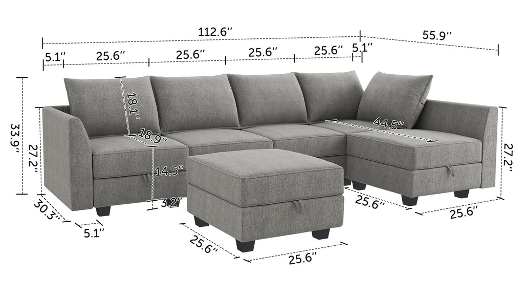 HONBAY 6-Piece Polyester Modular Sectional Sofa With Storage Seat