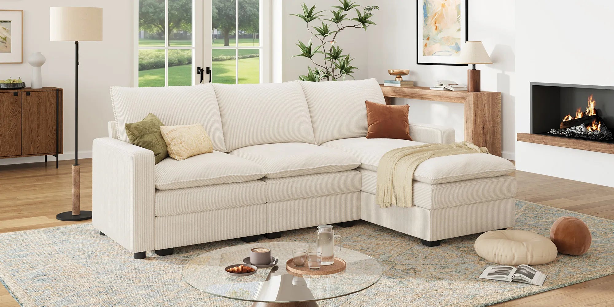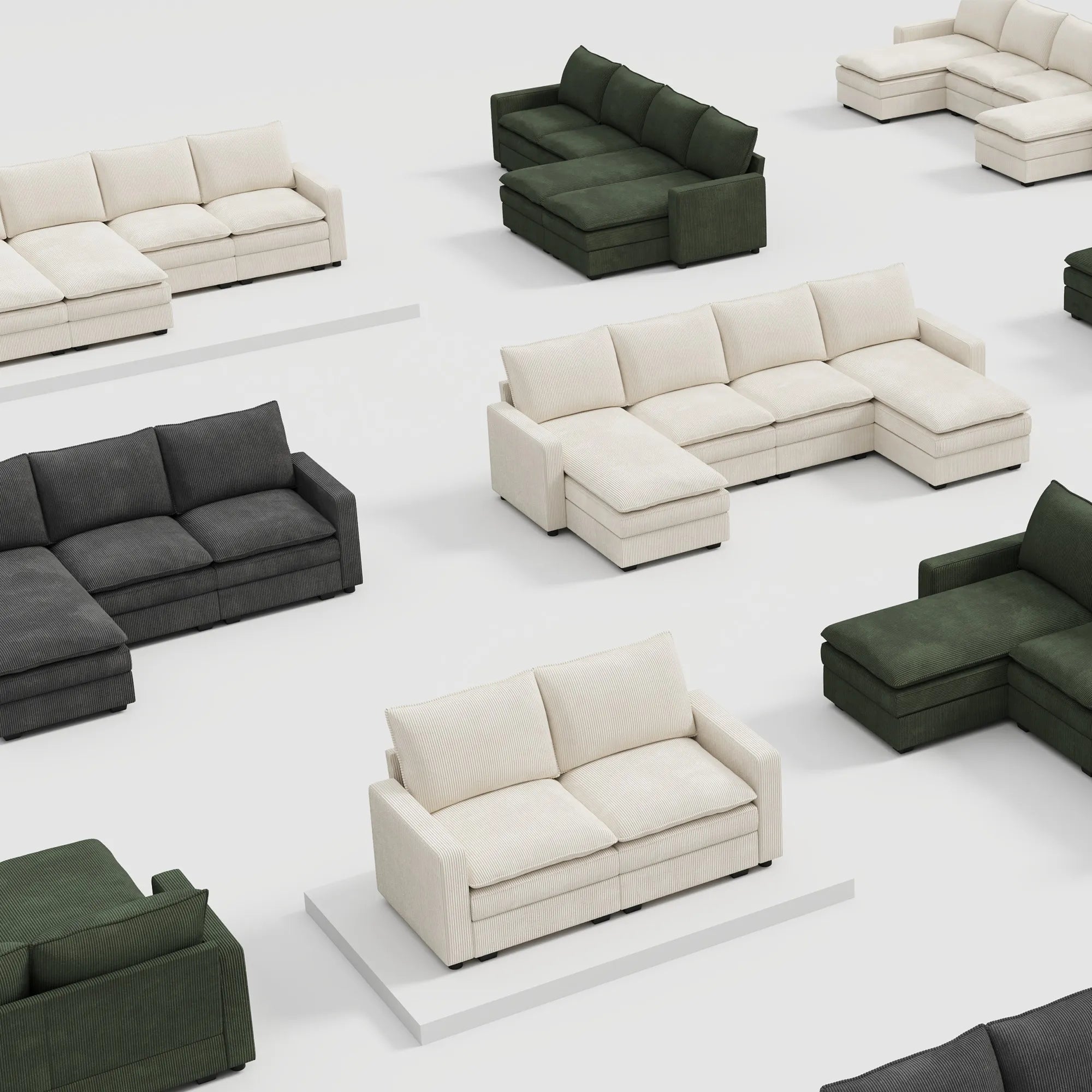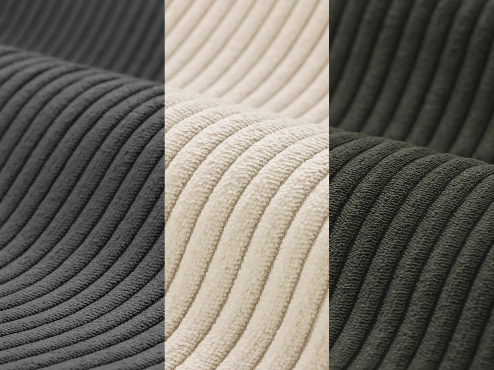 Soft, comfortable corduroy offered in three timeless colors, bringing warmth and texture to modern interiors.