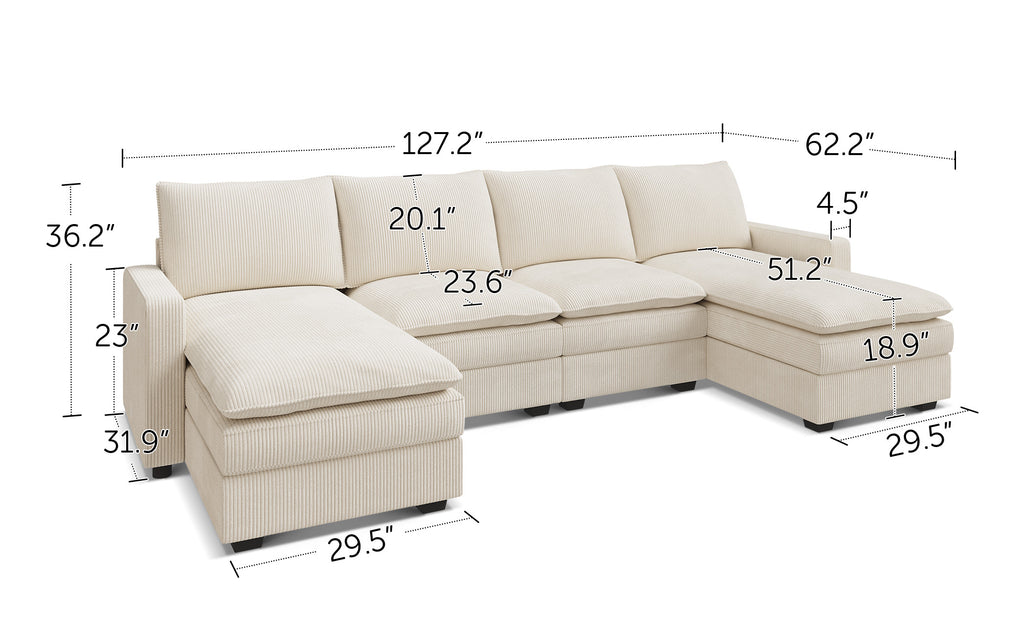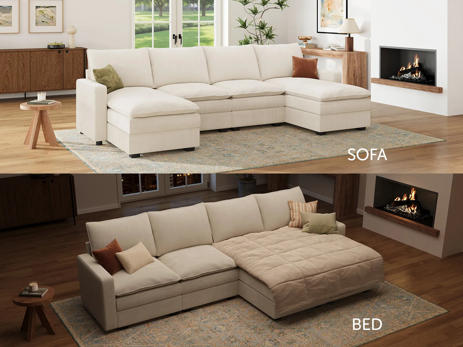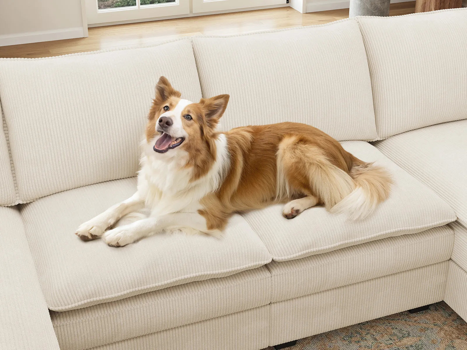 HONBAY 6 Seater Modular Corduroy U-Shaped Sectional Sofa with Plush Dual-Layer Cushions & Reversible Chaise