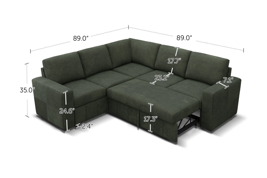 HONBAY 5-Piece Oversized Corduroy Pull-Out Sleeper Sectional Sofa with Storage & Block Arm