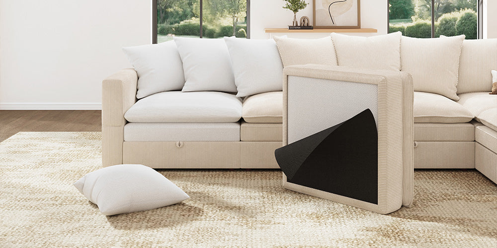 HONBAY 5-Piece Plush double-layer Cushion Corduroy Modular U-Shaped Sectional Cloud Sofa