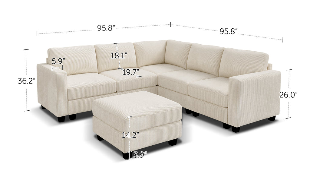 HONBAY 6-Piece Corduroy Modular L-Shaped Sectional Sofa With Hidden Storage Ottoman