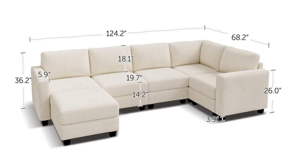 HONBAY 6-Piece Corduroy Modular U-Shaped Sectional Sofa With Hidden Storage Ottoman