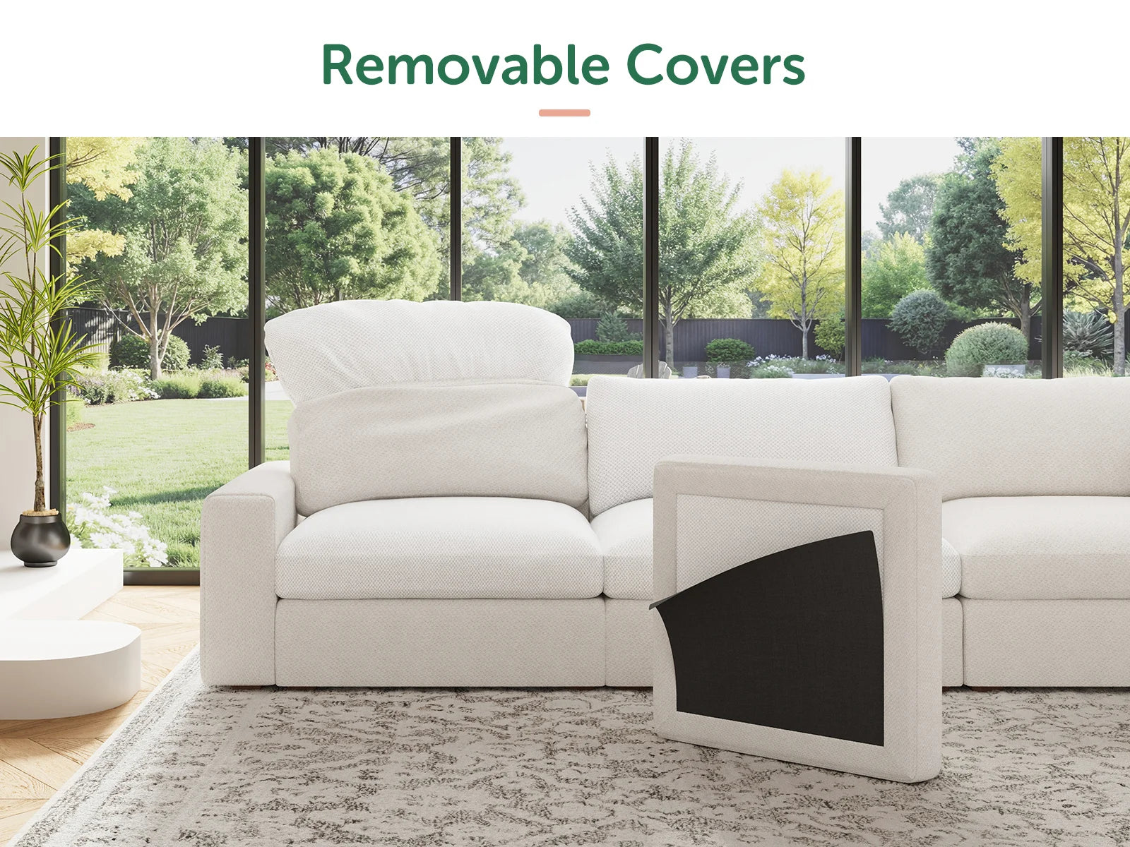 Seat, back, armrest & pillow covers are removable, allowing for gentle, mindful cleaning