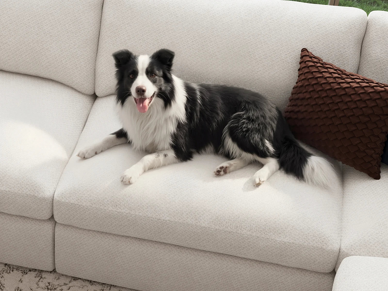 This sofa is upholstered in eco-friendly chenille fabric with a PFAS-free, C0-grade water-repellent finish, designed to make everyday living easier while reducing cleaning effort.
