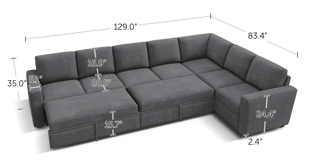 HONBAY 7-Piece Corduroy Modular Sleeper Sectional Sofa With 2 Storage Space