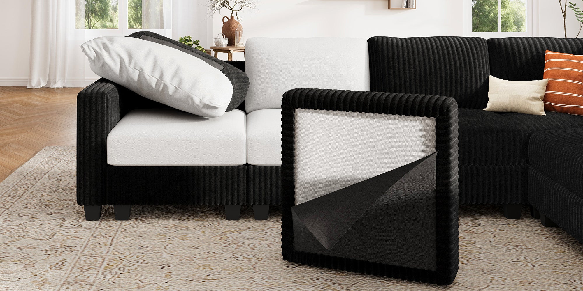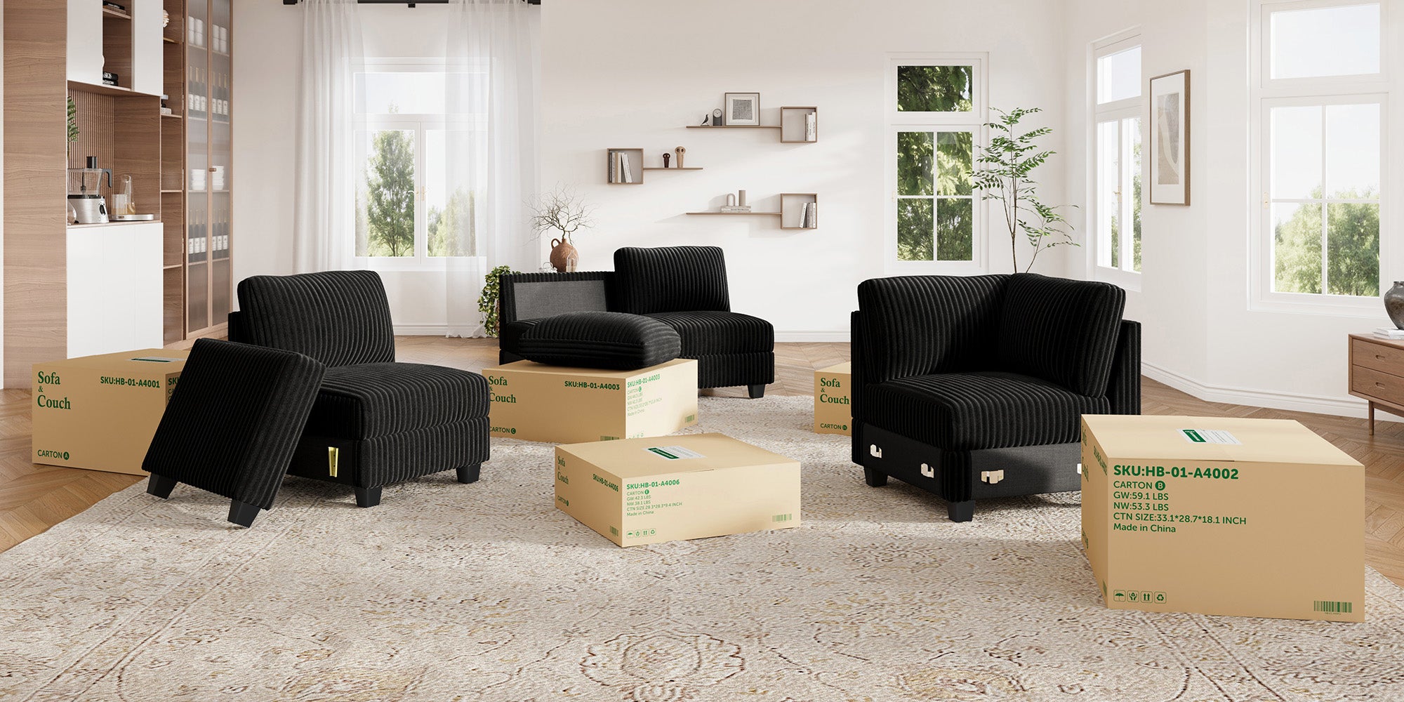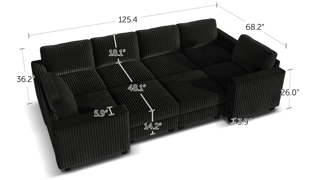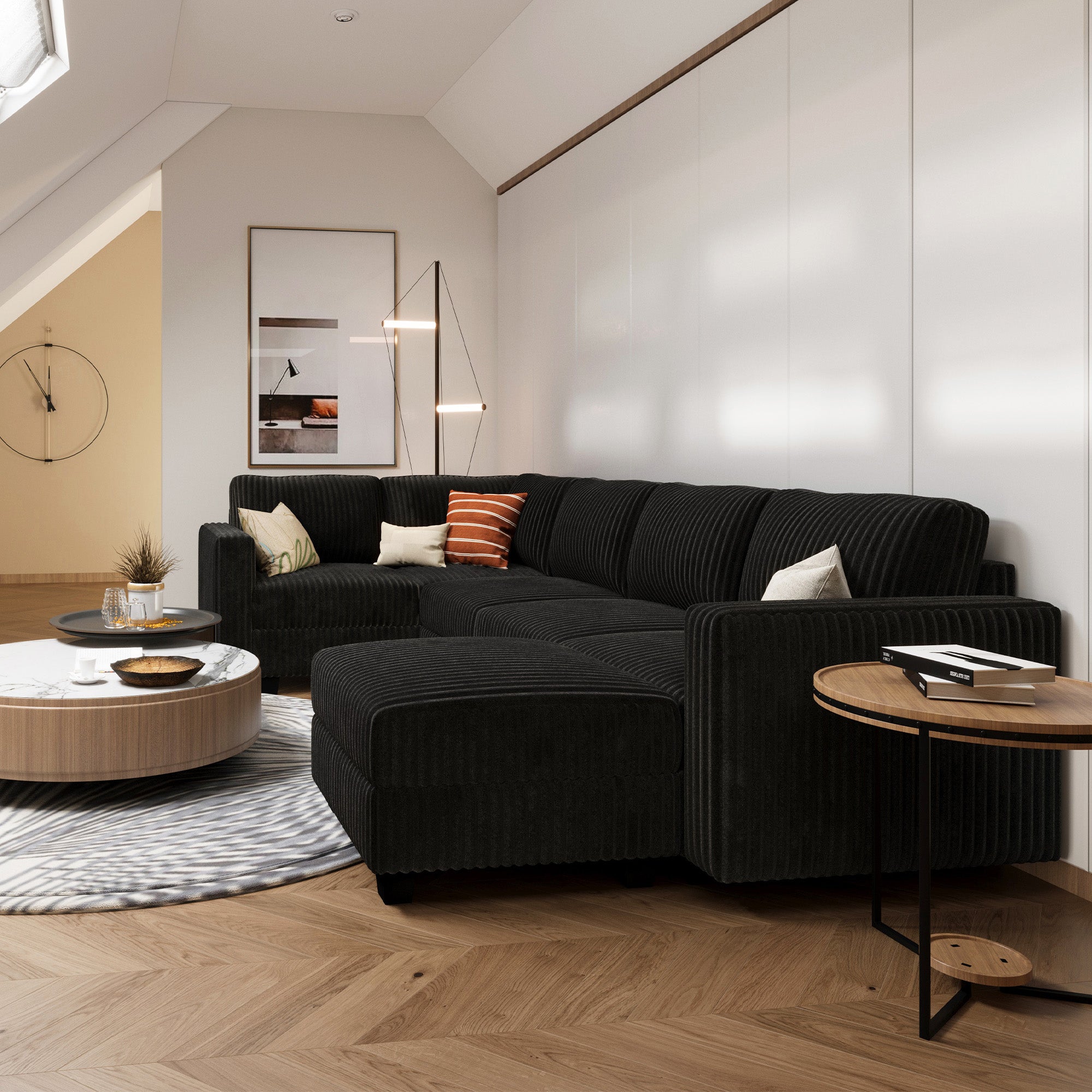 HONBAY 8-Piece Wide plush Corduroy Modular Sleeper Sectional Sofa With 2 Storage Ottoman