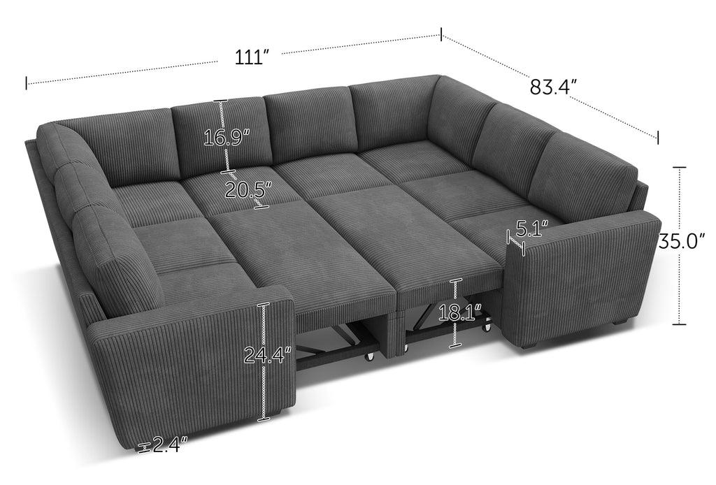 HONBAY 8-Piece Corduroy Modular Sleeper Sectional Sofa With 2 Storage Spaces