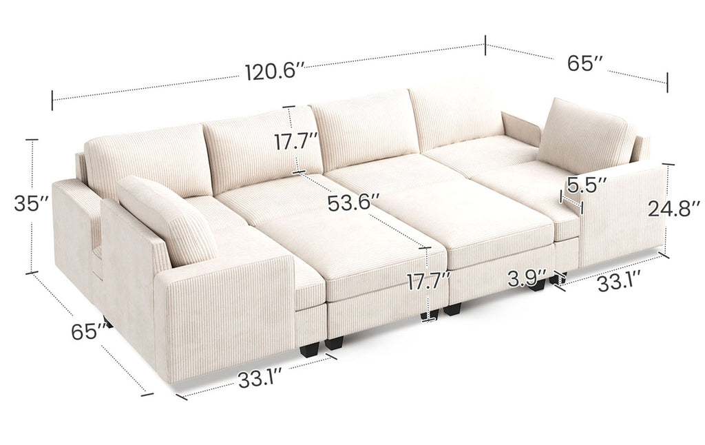 HONBAY 8-Piece Corduroy Modular Sleeper Sectional Sofa With Storage Ottoman