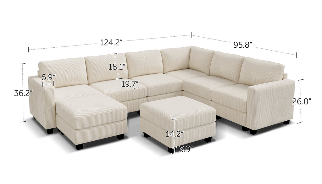 HONBAY 8-Piece Corduroy Modular U-Shaped Sectional Sofa With 2 Hidden Storage Ottoman