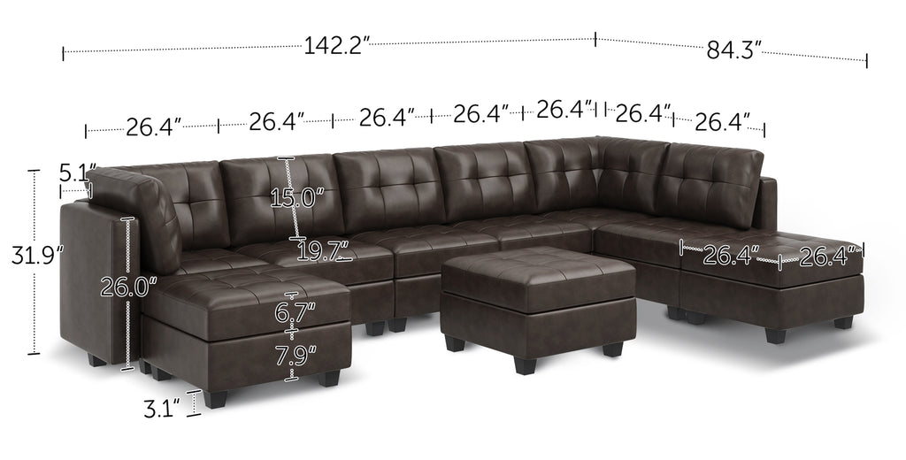 HONBAY 9-Piece Faux Leather Modular Sectional Sofa With Storage Seat