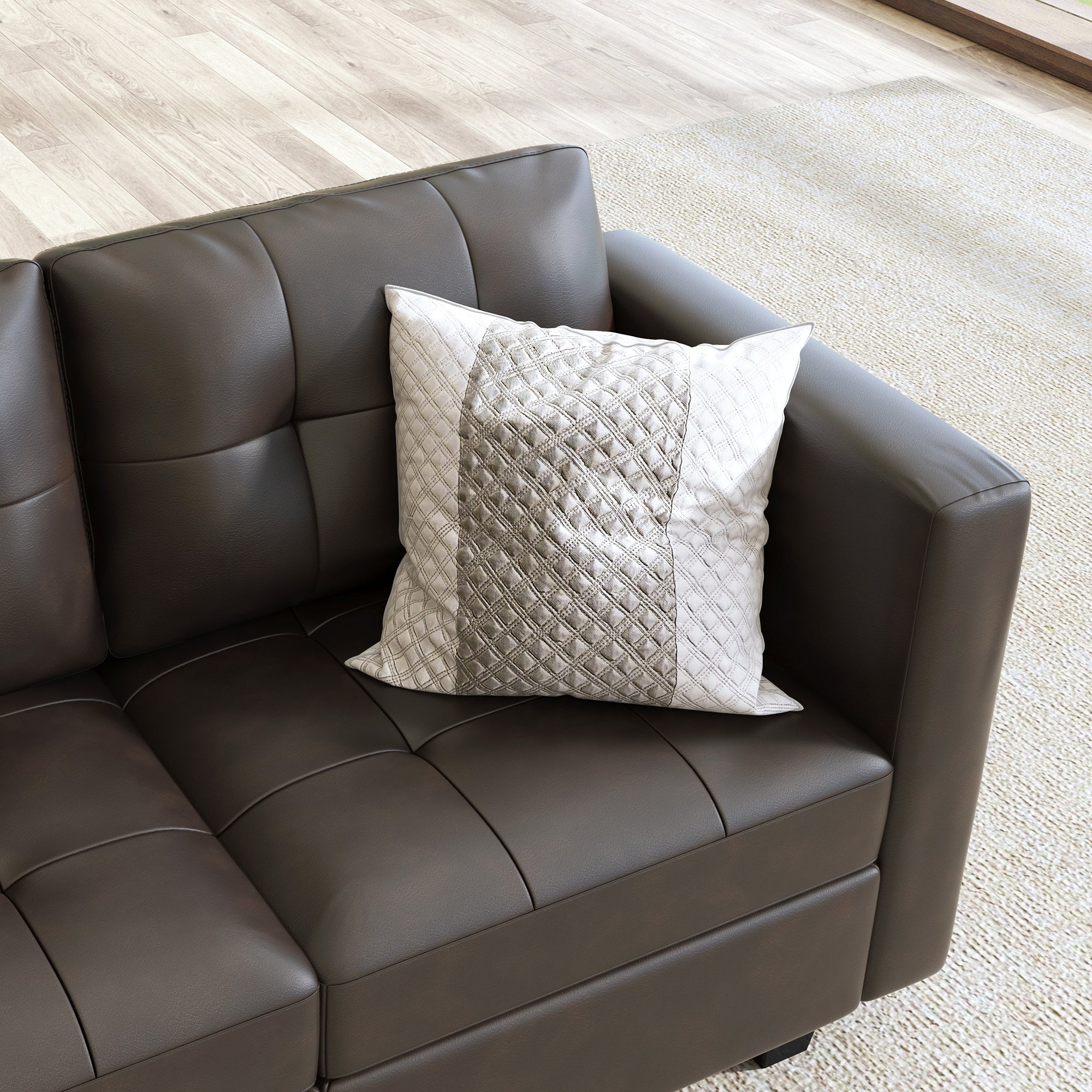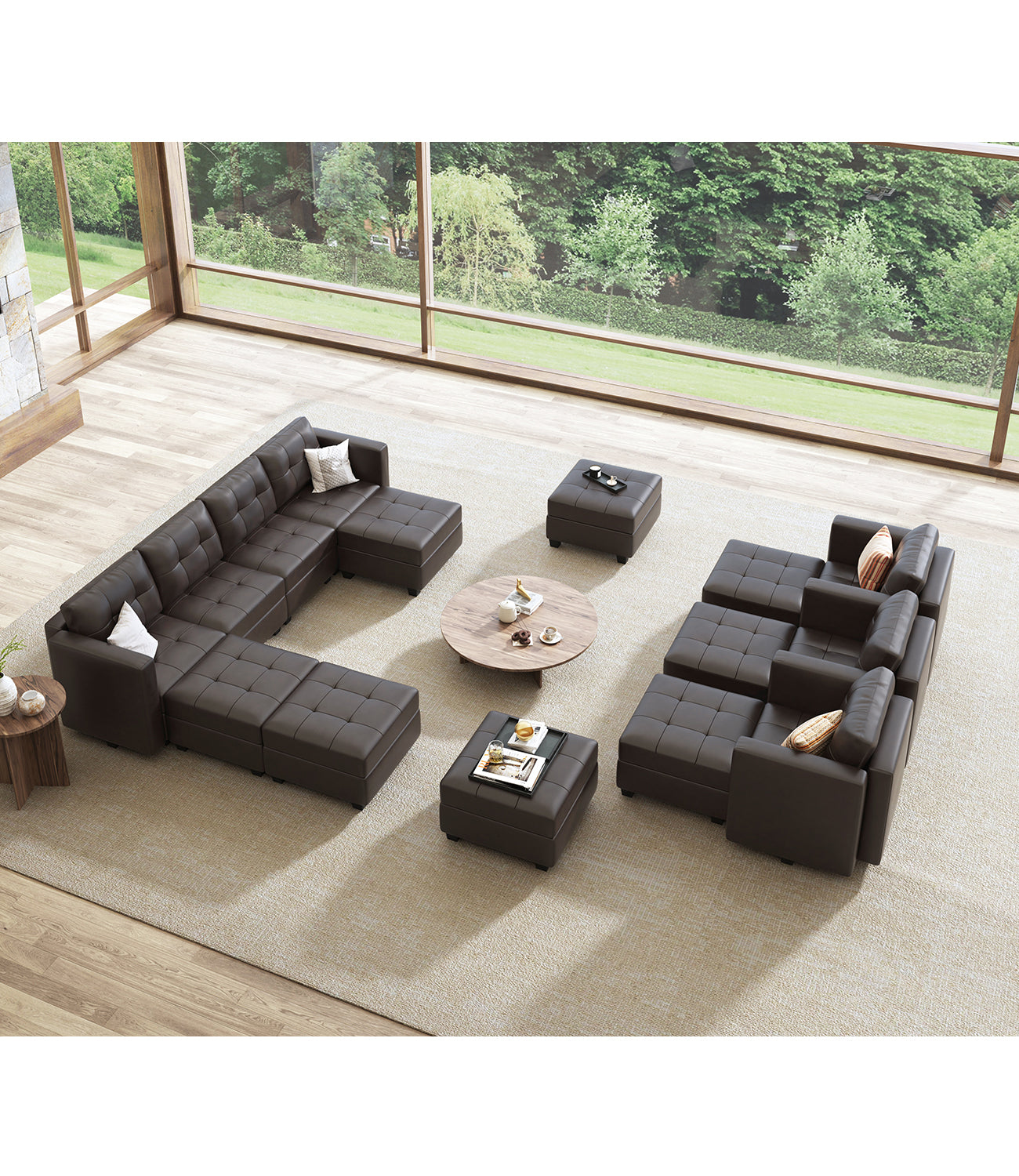HONBAY 9-Piece Faux Leather Modular Sleeper Sectional Sofa With Storage Seat