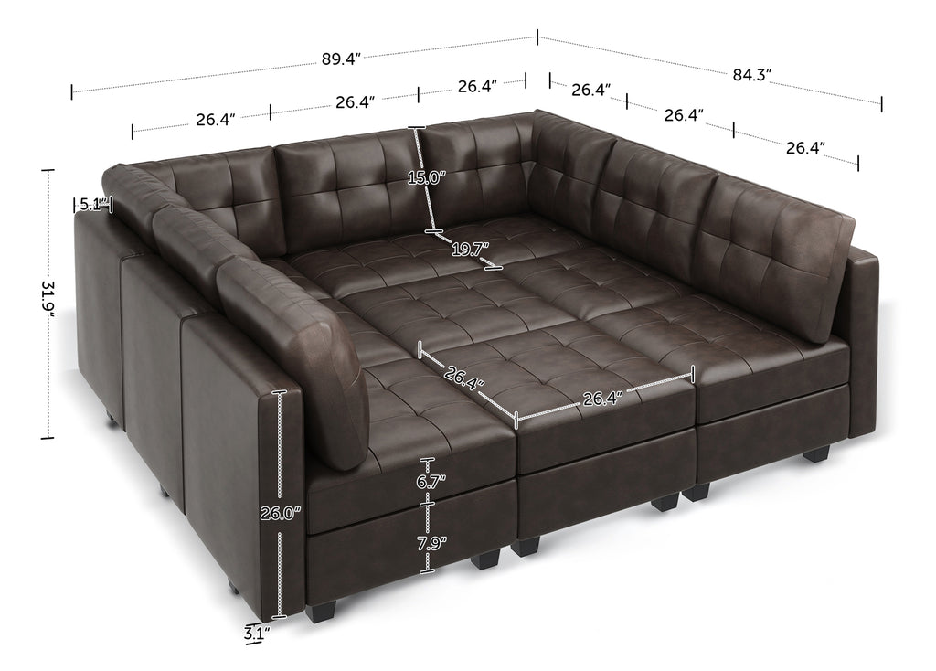 HONBAY 9-Piece Faux Leather Modular Sleeper Sectional Sofa With Storage Seat