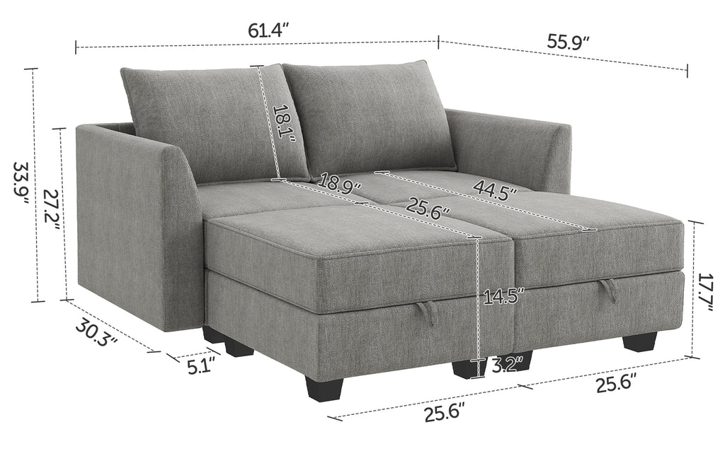 HONBAY 4-Piece Polyester Modular Sleeper Sectional Sofa With Storage Seat