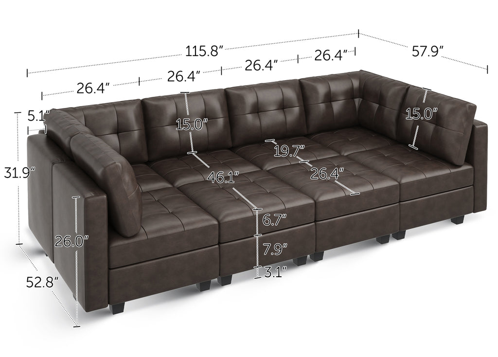 HONBAY 8-Piece Faux Leather Modular Sleeper Sectional Sofa With Storage Seat