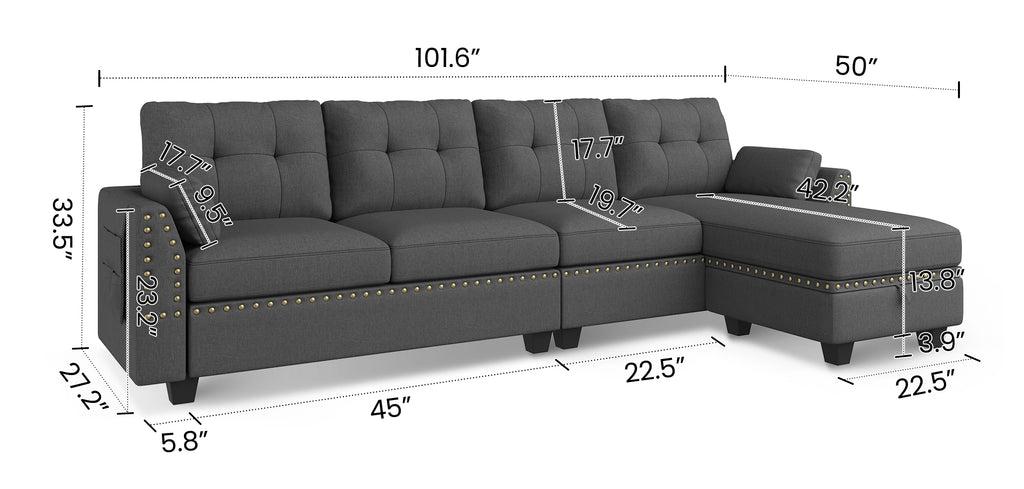 HONBAY 4-Piece Polyester Convertible Sectional With Storage Ottoman
