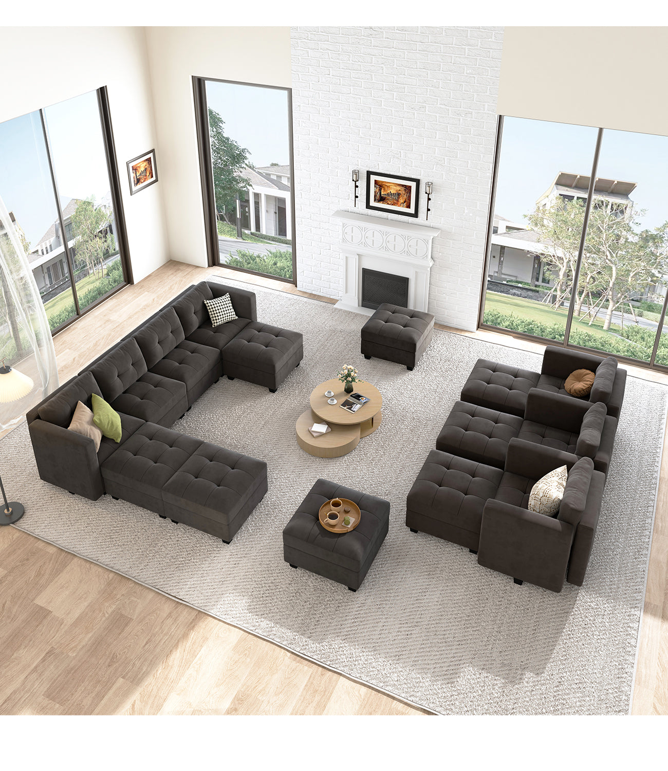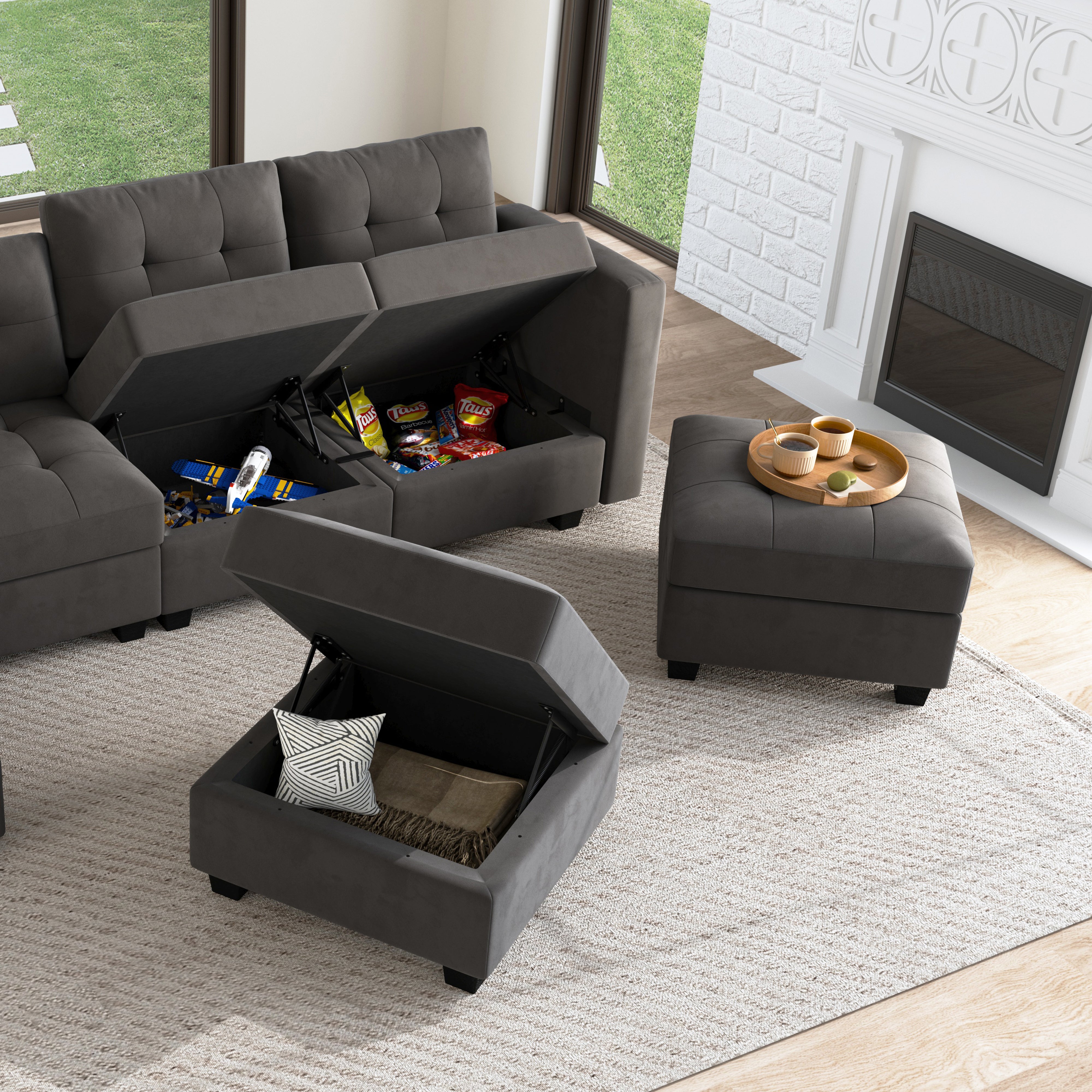 HONBAY 1 Piece Velvet Modular Sectional Storage Ottoman