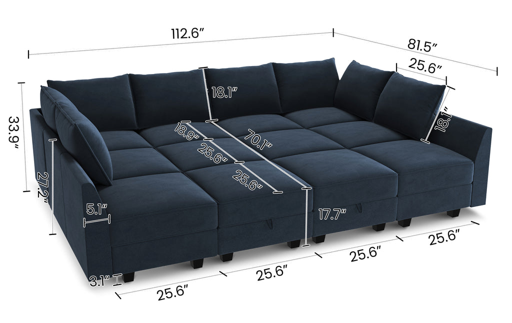 HONBAY 12-Piece Velvet Modular Sleeper Sectional Sofa With Storage Seat
