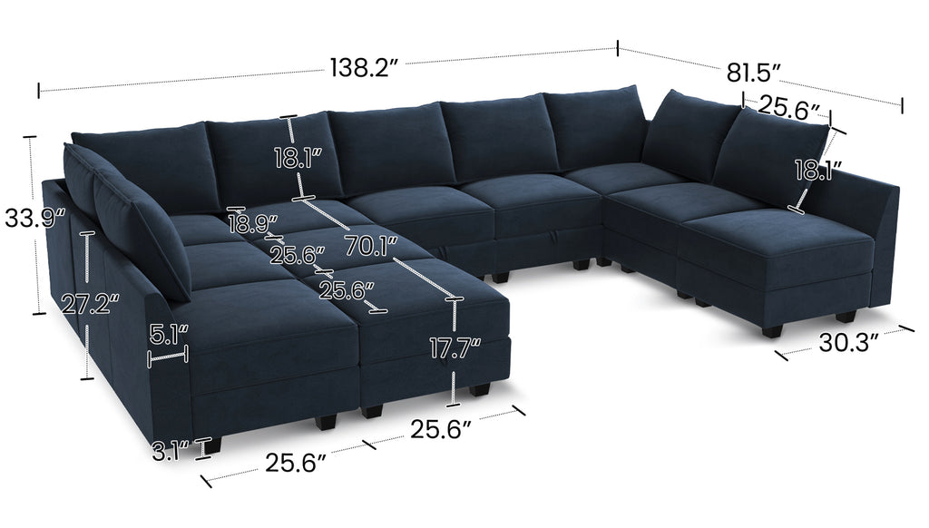 HONBAY 11-Piece Velvet Modular Sleeper Sectional Sofa With Storage Seat