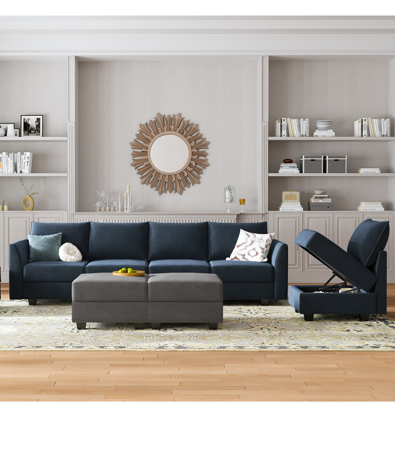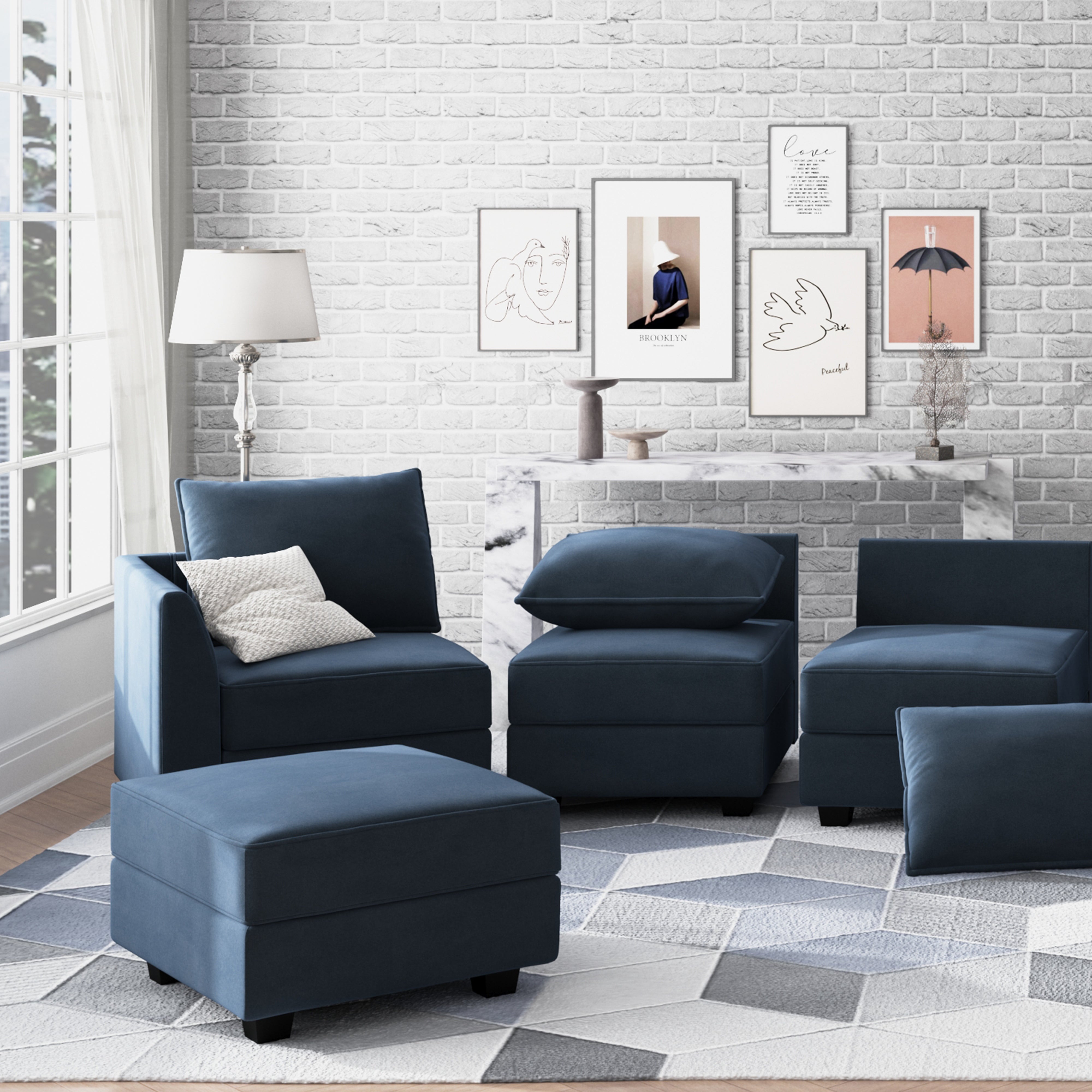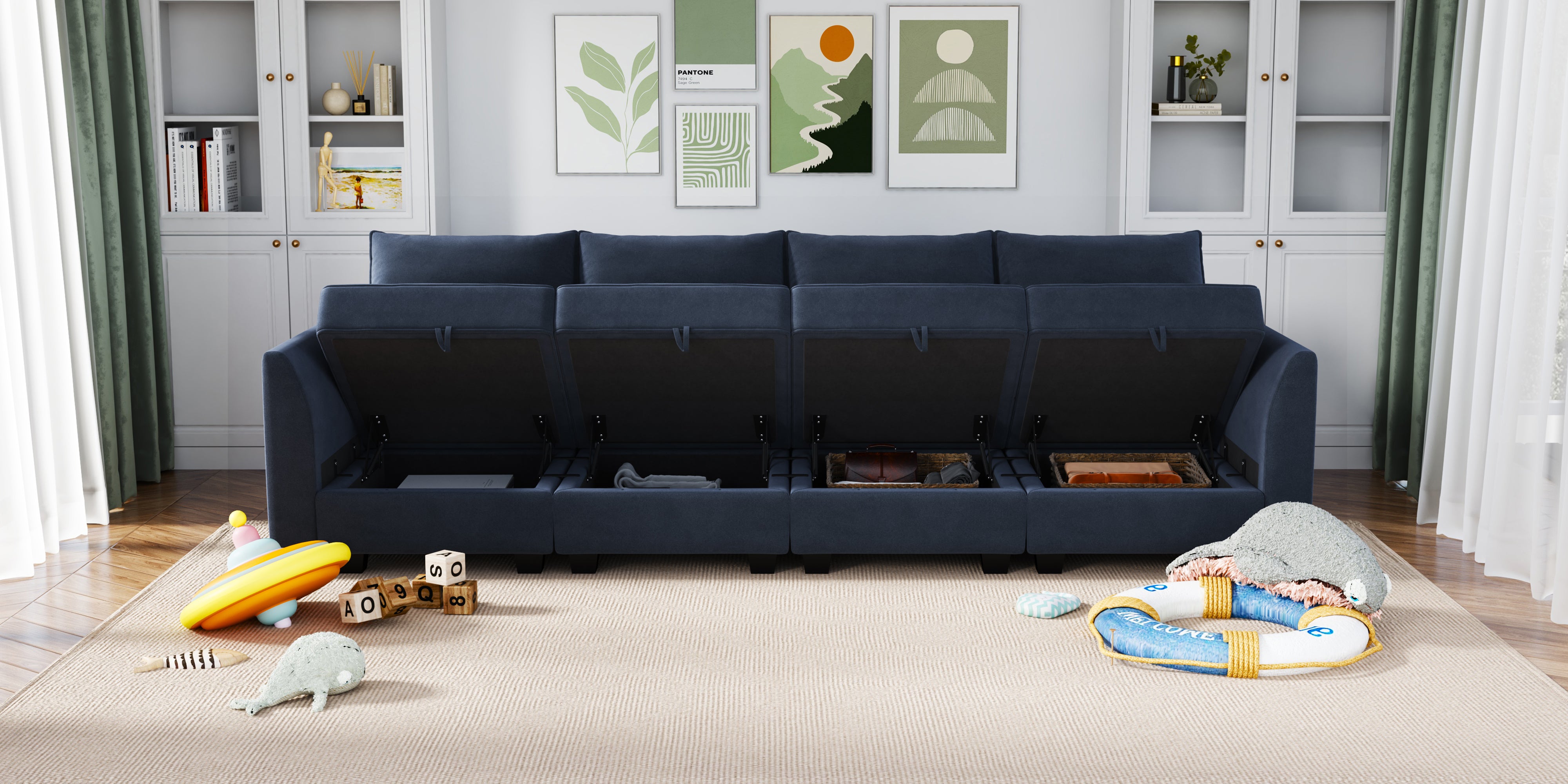 HONBAY 9-Piece Velvet Modular Sleeper Sectional Sofa With Storage Seat