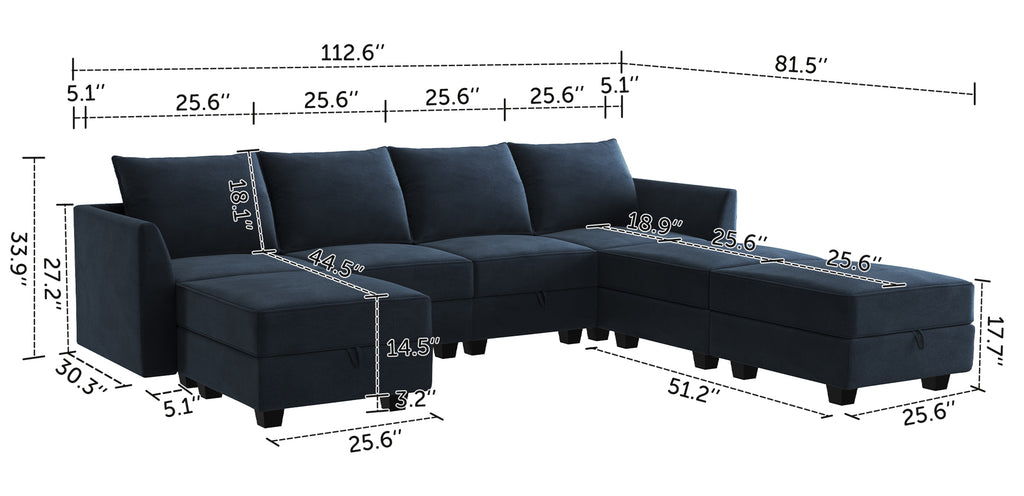 HONBAY 7-Piece Velvet Modular Sectional Sofa With Storage Seat