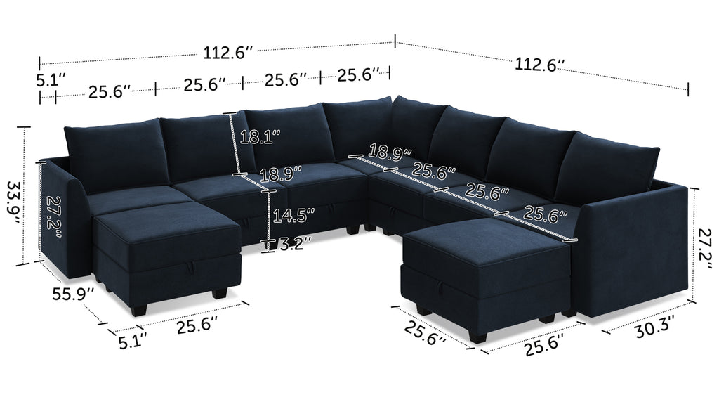 HONBAY 9-Piece Velvet Modular Sleeper Sectional Sofa With Storage Seat