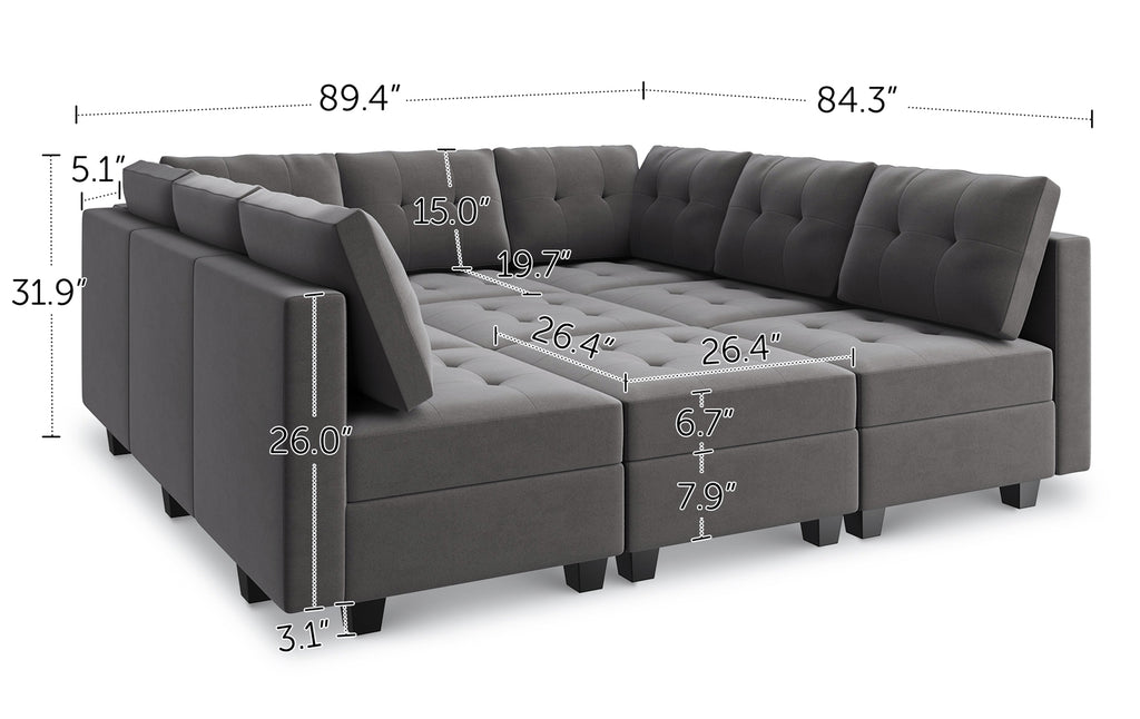 HONBAY 9-Piece Velvet Modular Sleeper Sectional Sofa With Storage Seat